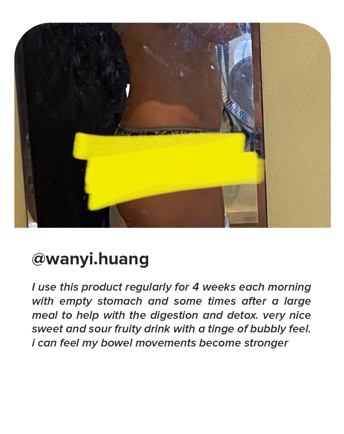 Kombucha (Fermented Black Tea Liquid, Apple Cider Vinegar), Lemon Juice, Inulin, Cassia Seed Extract, Enzyme Complex (Fermented Wheat Bran Extract), Blood Orange, Complex Vegetable And Fruit Concentrate (Pineapple, Green Papaya, Pitaya, Guava, Avocado, Pear, Beet Root, Dioscoreae Rhizoma, Apple, Grape, Tomato, Kiwi, Cantaloupe, Lemon, Tangerine, Orange, Kumquat, Grapefruit, Banana, Pomegranate, Passion Fruit, Noni, Strawberry, Jujube, Cherry, Blueberry, Mulberry, Star Fruit, Wax Apple, Watermelon, Melon, Longan, Litchi, Peach, Plum, Ume, Indian Jujube, Persimmon, Loquat, Almond, Sugarcane, Broccoli, Kale, American Celery, Okra, Alfalfa Sprouts, Pepper, Gynura, Luffa, Bitter Melon, Black Bean, Red Bean, Mung Bean, Pea, Pumpkin, Radish, Ginger, Burdock Root, Sweet Potato, Taro, Lotus Root, Black Fungus, Shiitake Mushroom, Golden Mushroom, Monkey Head Mushroom, Maitake, Brown Sugar), Bamboo Shoot Fiber, Arabic Gum, D-Xylitol, Silicon Dioxide, Green Papaya Extract (Green Papaya Extract, Maltodextrin), Pineapple Essence, Complex Plant Extract (Lemon Verbena, Roselle), Ginger Essence, Lactic Acid Bacteria (Bifidobacterium breve), Green Tea Essence, Wakame Extract(Wakame Extract, Maltodextrin), Cissus quadrangularis Extract -veldt grape