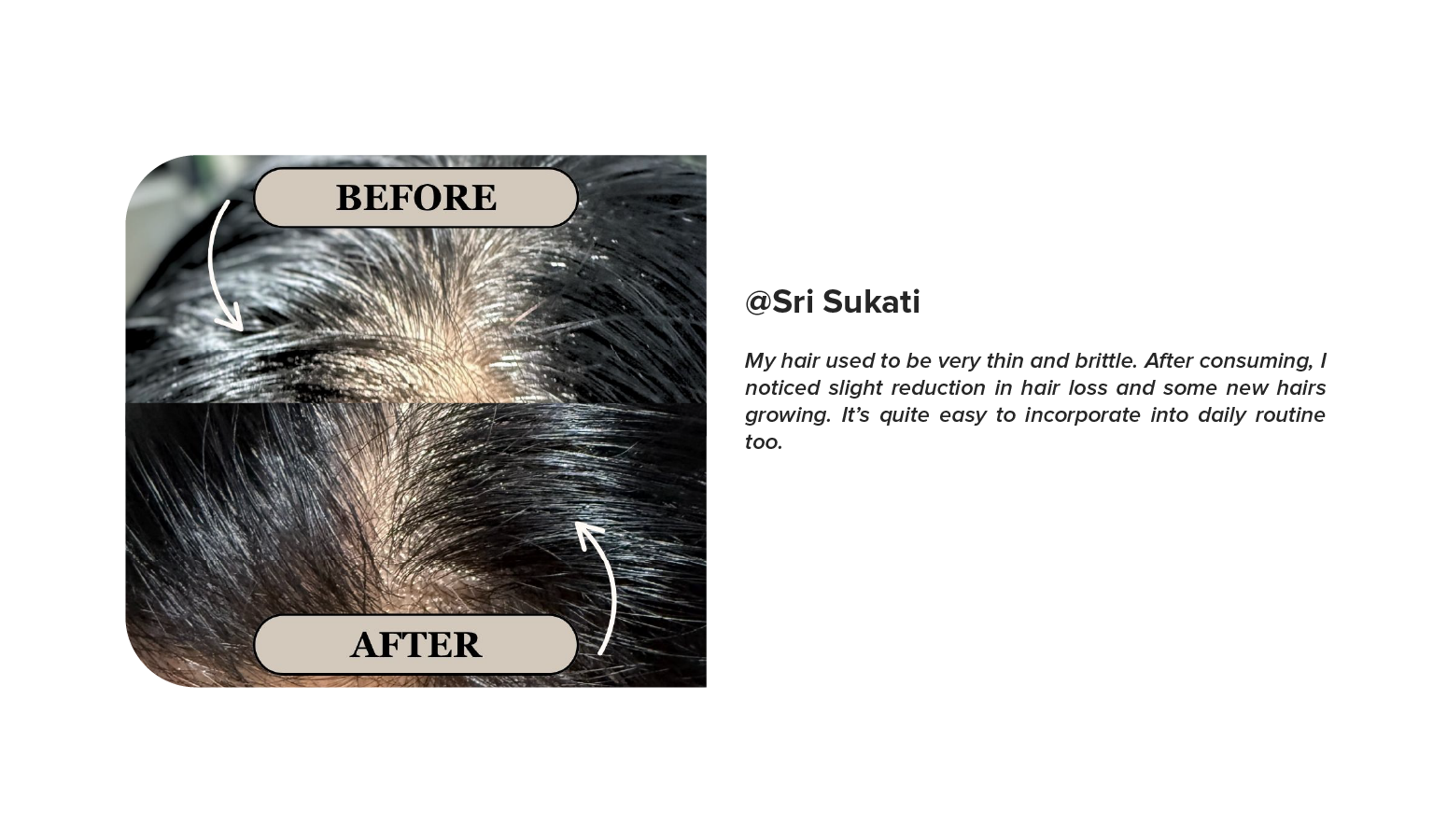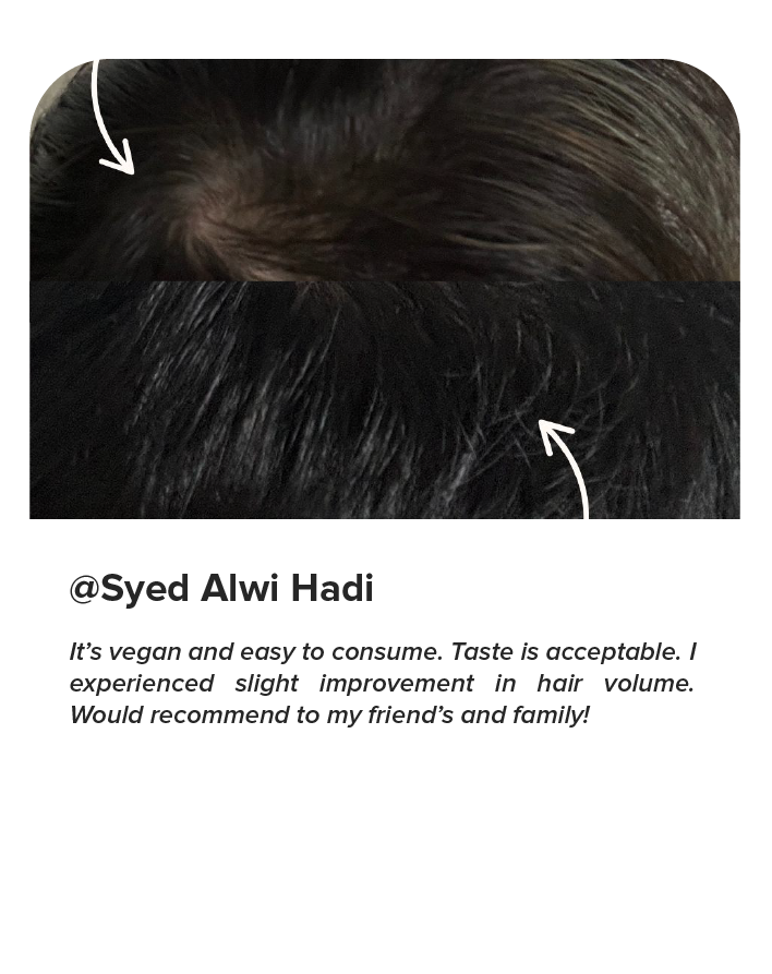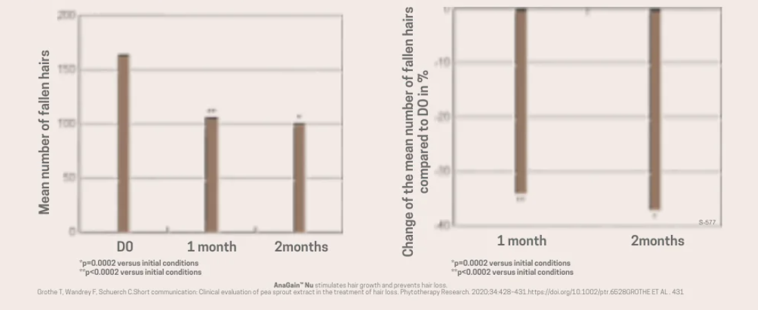 In a two-month supplementation study with 21 volunteers, 95% experienced a reduction in hair loss. 86% of participants reported a reduction in hair loss, and 71% perceived an improvement in overall hair condition after eight weeks of treatment.