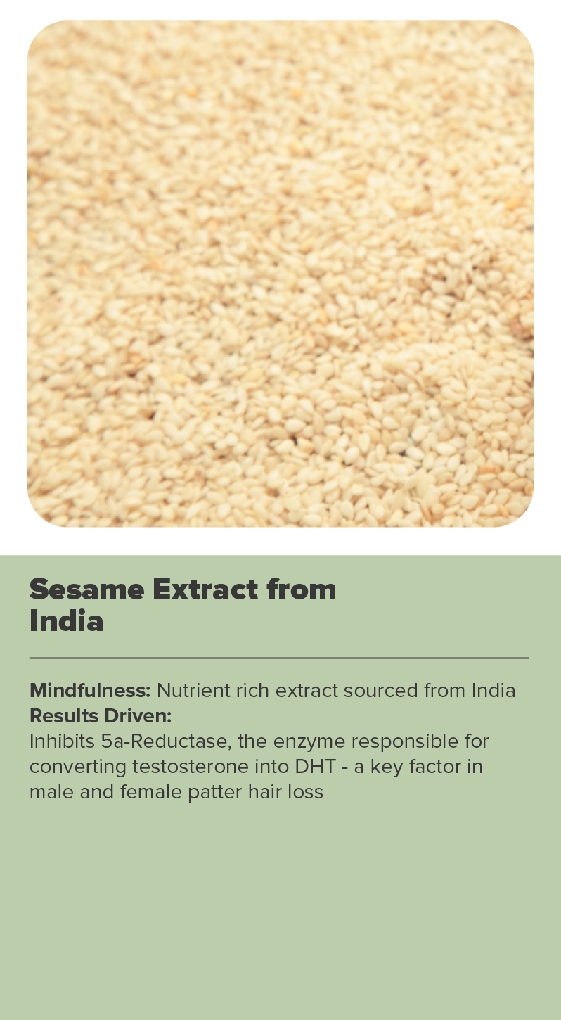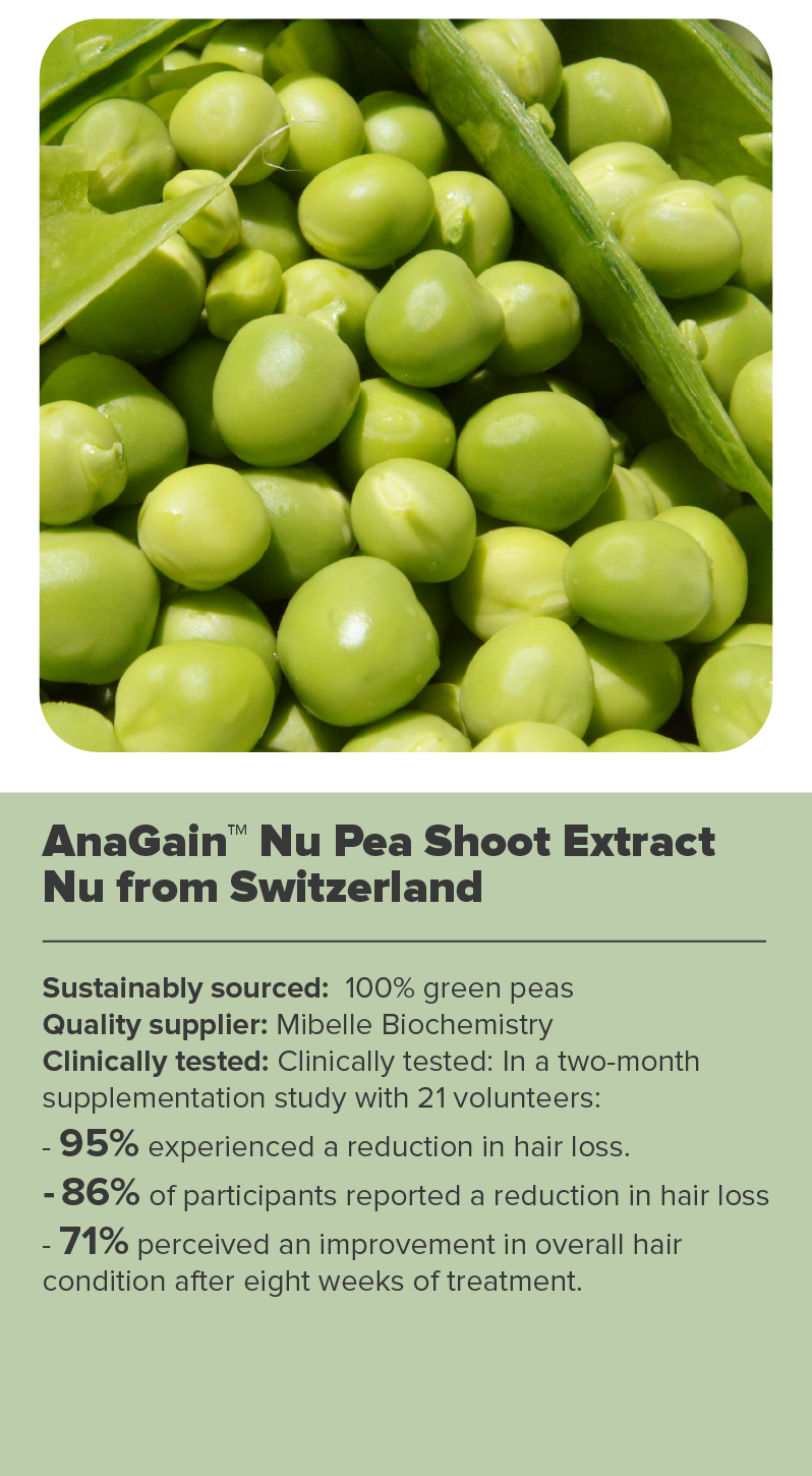 Derived from organic pea shoot extract, it helps reduce hair loss by reactivating hair growth at the root and extending the hair's growth phase. It stimulates dermal papilla cells, leading to visibly thicker, fuller hair over time.